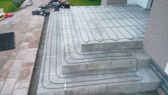 Теплые ступени крыльца на входной группе повышают безопасность посетителей в гололед. То же относится к устройству подогрева прилегающей территории (пешеходная дорожка, автостоянка).
