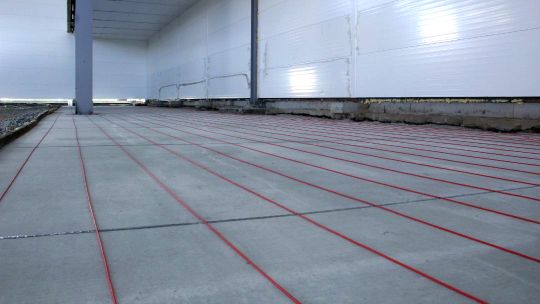 Монтаж нагревательного кабеля позволяет избежать вспучивания полов, появления трещин на них из-за постоянной отрицательной температуры в холодильнике.